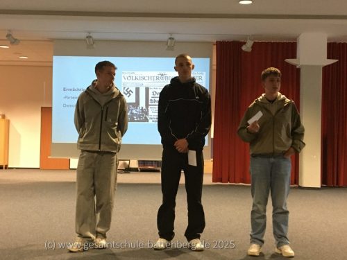Nach dem Besuch der Gedenkstätte des Konzentrationslagers Buchenwald lud die Klasse HR10B von Frau Naumann die 9. Klassen des Geschichtsunterrichts von Frau Ebert und Frau Zörb zu einem besonderen Begegnungstag ein. Ziel war es, über das Erlebte ins Gespräch zu kommen, persönliche Eindrücke zu schildern – und auf eine ganz besondere Weise an die Geschichte zu erinnern.