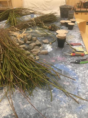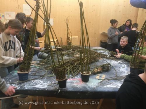 Aktuell arbeite ich mit der Geschichtsklasse von Frau Kaiser an einem spannenden Projekt: dem Flechten von Weidenreusen für Gemüse. Nach einer Doppelstunde haben wir bereits gute Fortschritte gemacht. Die Schüler sind engagiert und lernen nicht nur eine alte Handwerkskunst, sondern auch die Bedeutung von Nachhaltigkeit und Selbstversorgung.