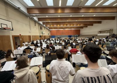 Bereits am Vormittag trafen sich die Musikerinnen und Musiker zu einer großen gemeinsamen Probe. Dabei lernten sich die Schülerinnen und Schüler der verschiedenen Schulen kennen, hörten sich gegenseitig zu und stimmten sich auf den Konzertnachmittag ein. Viele merkten schnell, wie spannend es ist, mit anderen Ensembles zusammenzuarbeiten und neue musikalische Ideen auszuprobieren.